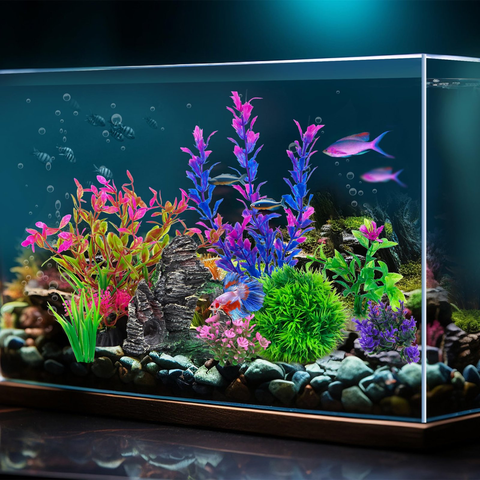• We provide the suitable aquarium products for different sizes of aquariums in order to save you time. You just need to buy them according to your needs and put them in your fish tank, and they will create a beautiful underwater world for your pet fish, making fish life more interesting and happier. This will turn your fish tank into their amusement park.