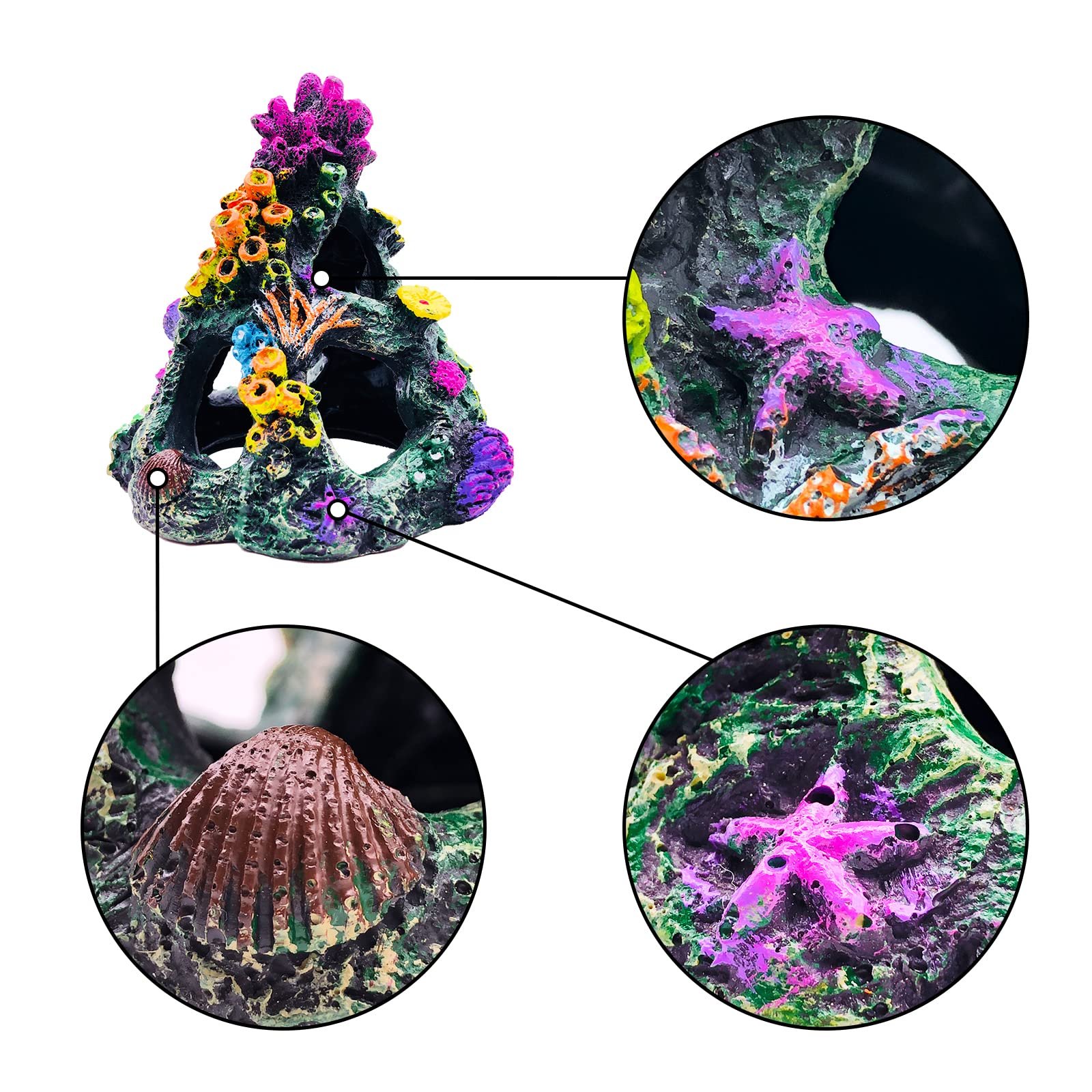 • Solid one-piece construction: This resin coral reef designed with one-piece construction, not easy to broke. There are some sea anemones and starfish on that mountain as decorations, it will be a nice scenery for your tanks.