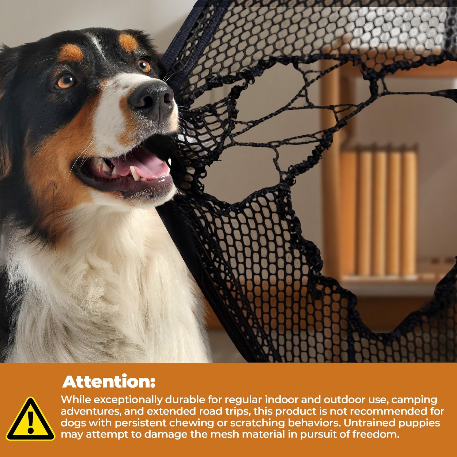 - 360° Airflow + Chew-Proof Security “Reinforced steel-frame corners and bite-resistant 620D Oxford fabric make this durable dog crate withstand rough play. Double-layer mesh panels (tested by 50 hyperactive dogs!) keep your soft dog crate ventilated, while the machine-washable orthopedic pad reduces travel anxiety.”